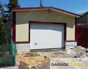 Гараж из сэндвич-панелей размером 6*5,5м с двускатной кровлей на ленточном фундаменте. Тульская область, Воловский район, д. Сухие плоты, трасса М4-Дон.