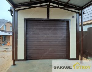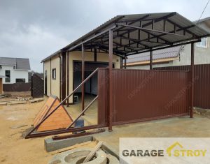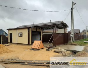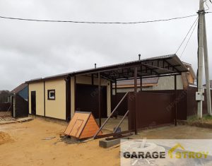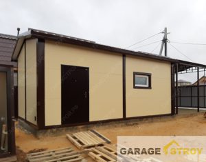 Строительство гаража из панелей с навесом размером 12,5x4x3m.