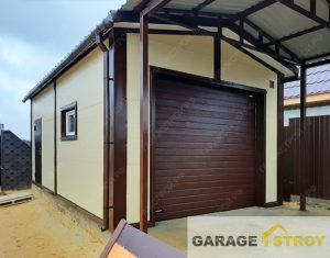 Наша работа — Гараж из сэндвич-панелей с навесом 12,5х4м под ключ.