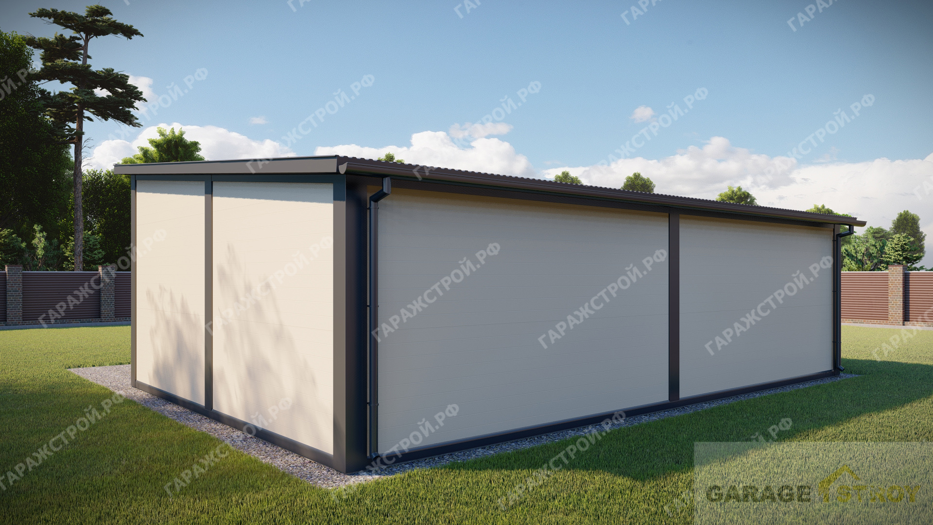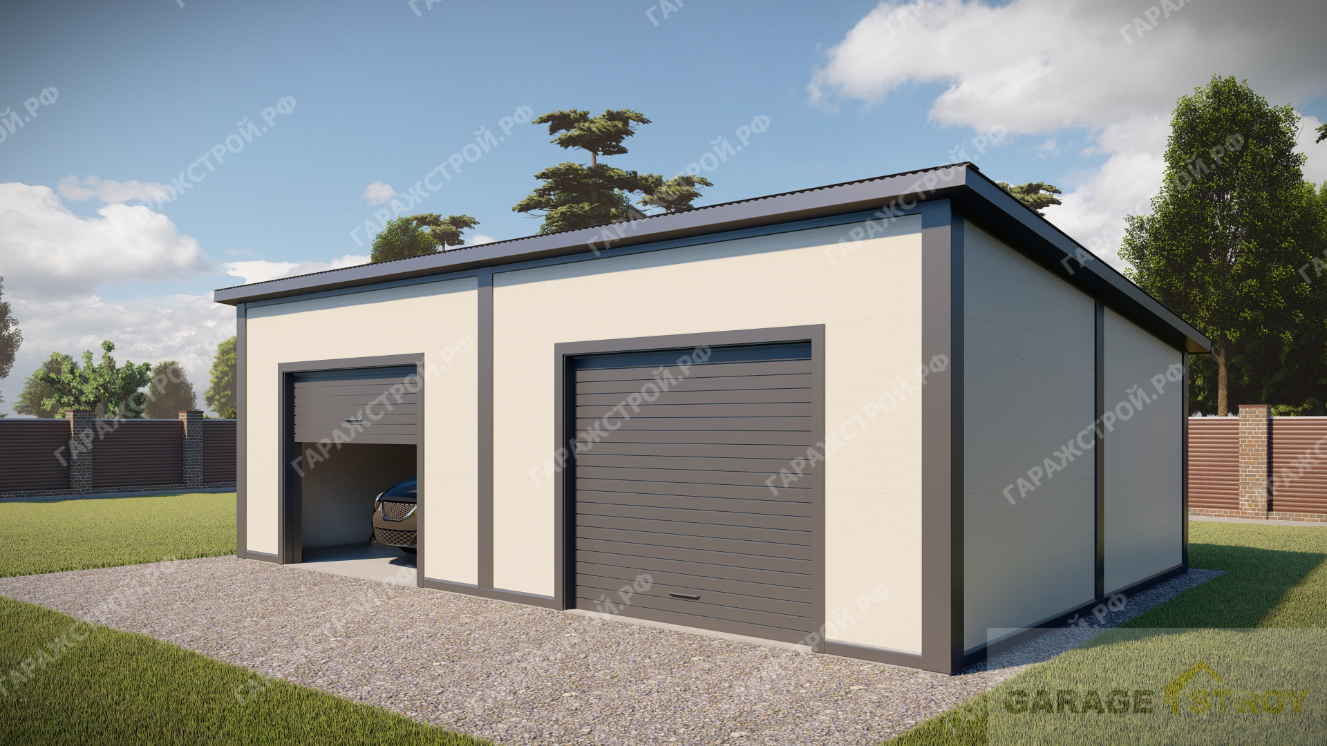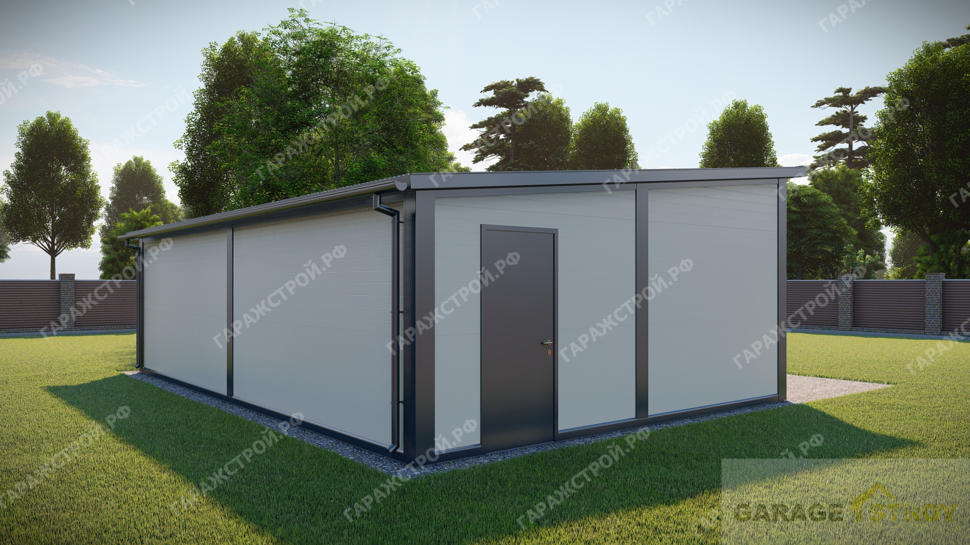 Гараж из сэндвич панелей на 2 авто размером 6х9м с односкатной кровлей назад