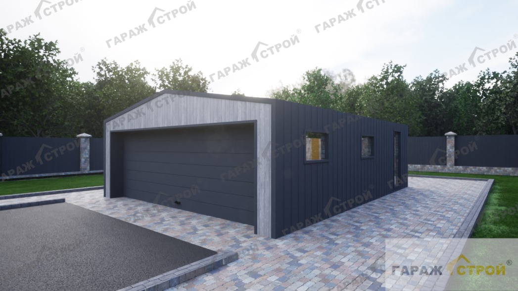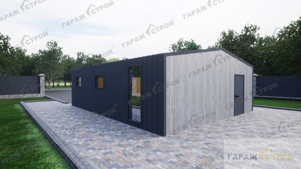 Гараж с хозблоком в стиле Барнхаус 9х7м