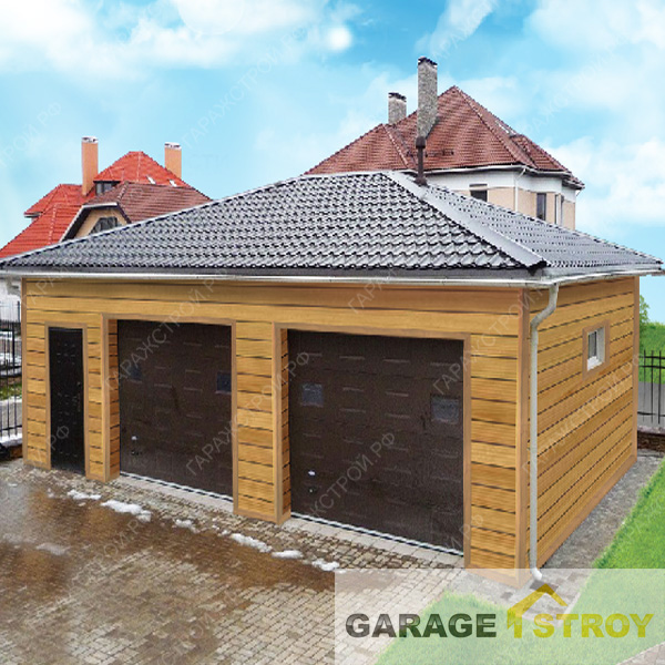 Просторный гараж обеспечивает достаточно места для двух автомобилей любых марок. Каркасная конструкция гаража позволит вам значительно сэкономить финансы, не уступая при этом по качеству другим вариантам. Имитация бревна обеспечивает эстетичный внешний вид.